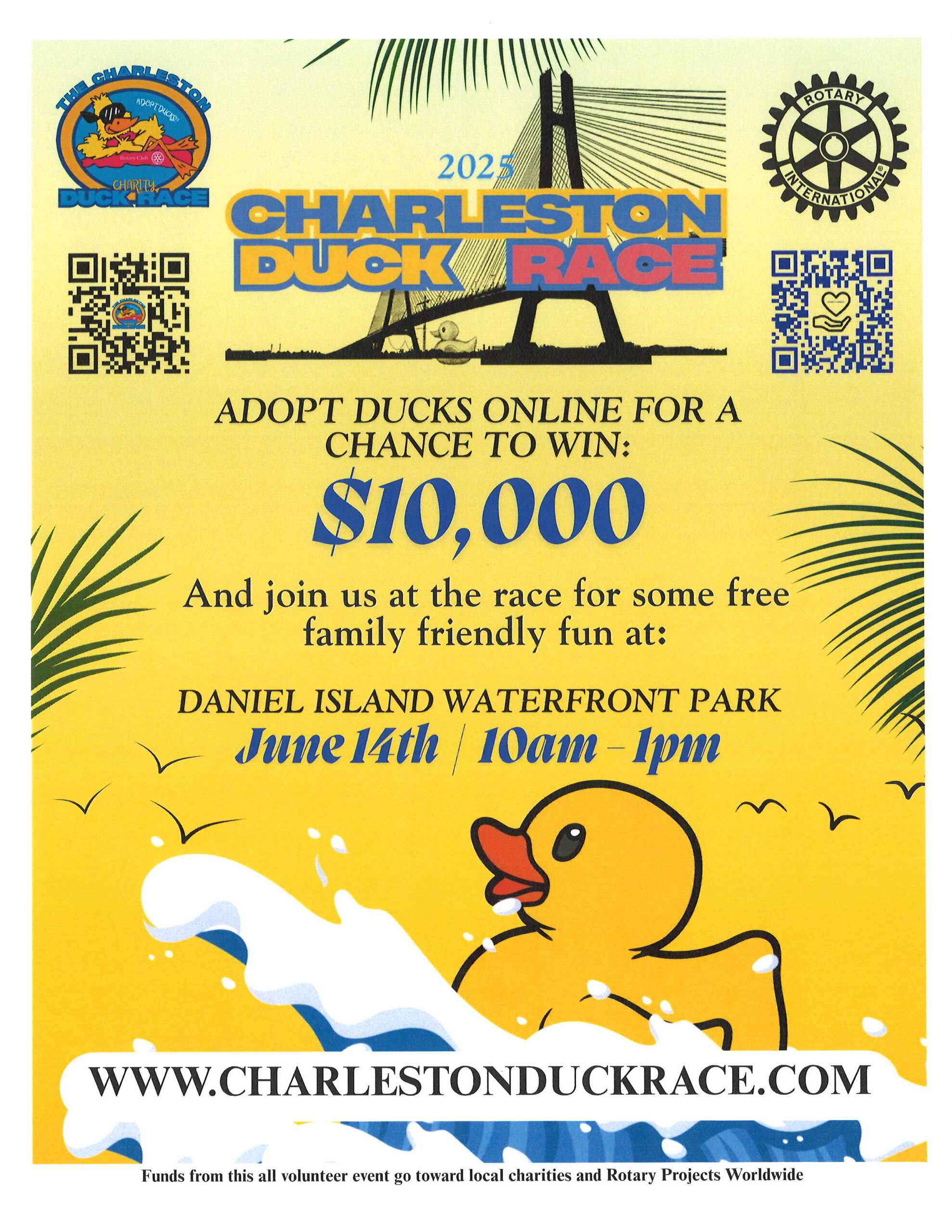 Put on by Lowcountry Rotary Clubs, and hosted by the Rotary Club of Daniel Island, this year’s Duck Race is on Saturday, June 14 at Daniel Island Waterfront Park. Since its inception in 2007, the event has generated more than $2.5 million for local charities.